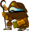 Intentando medidas diplomáticas, Karil hizo una voz fantasmal asustándolos bastante, uno de ellos echó a correr, otro tuvo suficiente valor como para preguntar si la voz es de un tal “Bisbe”. El resto soltaron las hoces y se quitaron las máscaras, era gente del pueblo. Por lo visto eran el relevo, tenían que ir a la casa, sacar los espantapájaros, recolectar el musgo, preparar las pociones,… El líder de la organización es el tal Bisbe, pero no vivía en esas casas.