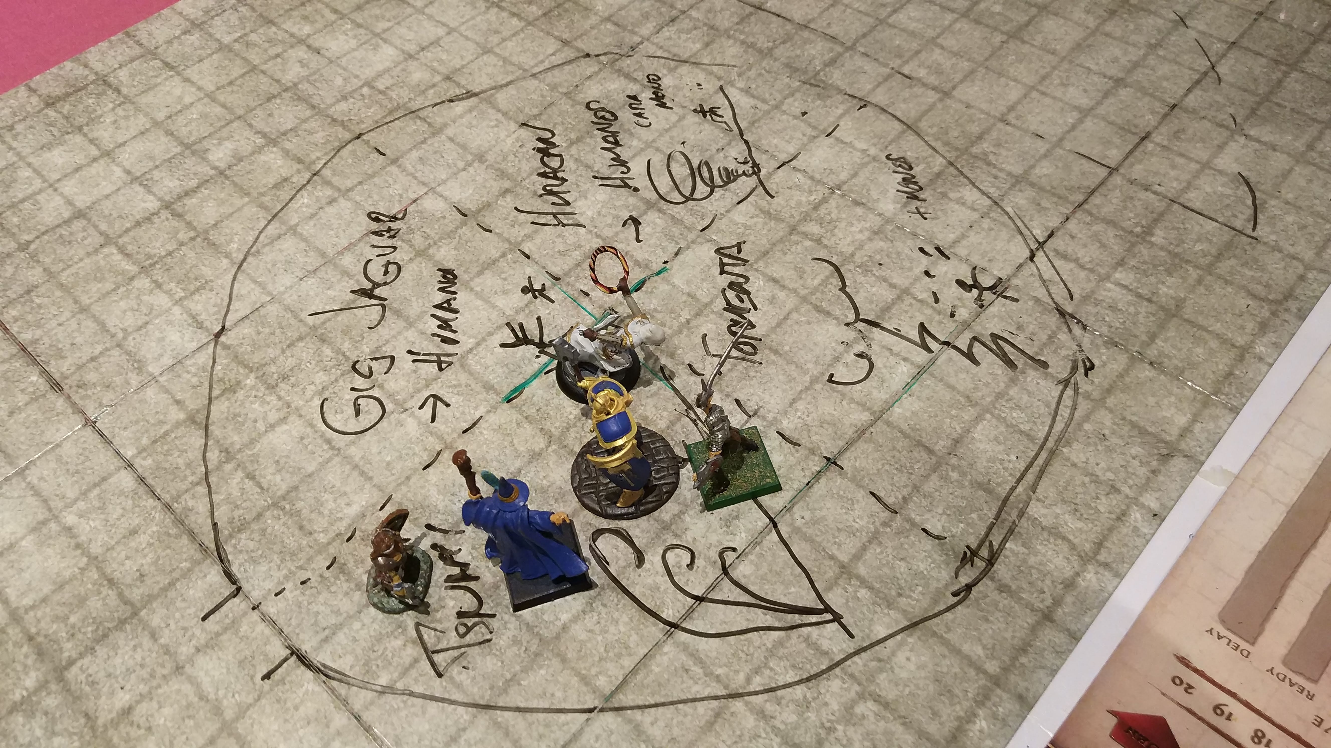 - Debra se llevó la peor parte, un golem con cabeza de jaguar apareció en su poblado y el combate finalizó cuando el golem la dejó a -15 puntos de vida, menos mal que vuelve a la sala y Englier consigue salvarla.