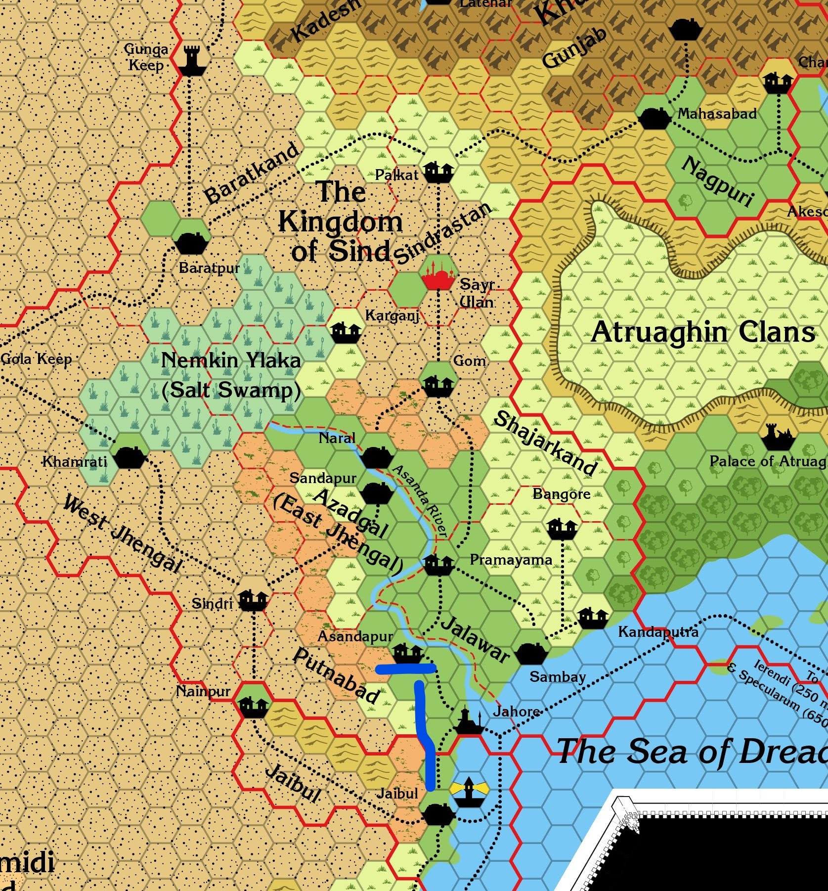No podíamos volver a Jaibul (pobres de nuestros compañeros allí alojados a los que solo pudimos enviar un mensajero para avisarles de nuestras intenciones), así que partimos hacia el norte, a Asandapur, allí localizamos un alquimista, al que le dimos una muestra de las babas, a ver si nos decía que podían ser.