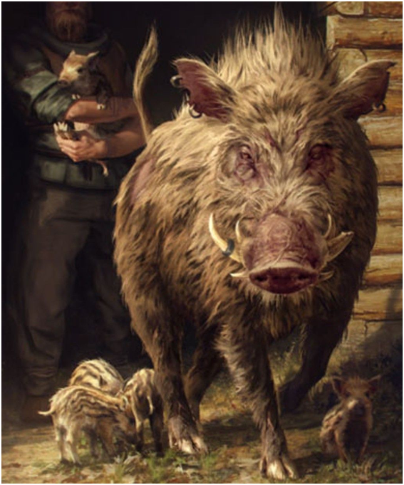 Brutus ya no era ese cerdo salvaje enorme que habíamos visto a la llegada, era una picadora de carne, un gigantesco jabalí de enormes colmillos con ojos inyectados en sangre que trataba de matar todo aquello vivo que estuviera a su alcance. Mike abrió fuego sobre la bestia y Mathew le golpeó con la lámpara de queroseno. El combo funcionó, Brutus se sintió muy herido y fue a refugiarse a su porcatera. En ese momento los animales se calmaron y todo volvió a la normalidad.