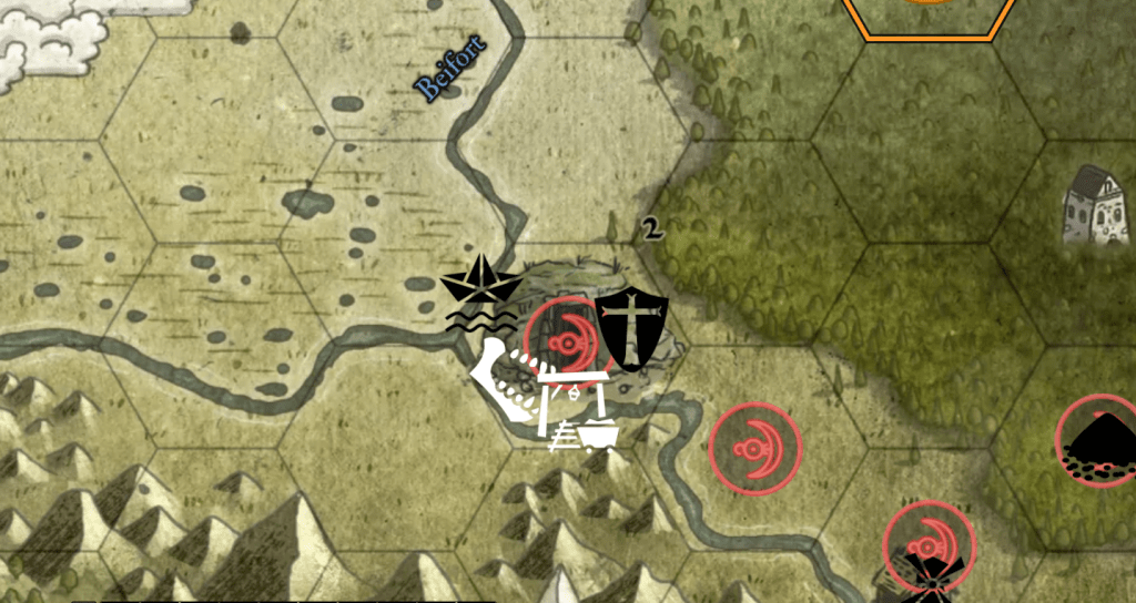 Nos levantamos y nos disponemos a encontrar un paso para cruzar el río por el Suroeste, en vez de un paso seguro encontramos una extraña estructura que nos recuerda a una mandíbula abierta. La factura parece enana, Brukril nos comenta que posiblemente fuera algún tipo de monumento que se ha derruido y que alguien ha transformado en su guarida, pero no cree que el monumento facilite cruzar el río.